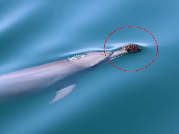 چونچ پر پھنسایا گیا اسفنج جہاں حفاظت کرتا ہے وہیں ڈالفن کے پیچیدہ ایکو لوکیشن سسٹم (جو ان کے آواز کے ذریعے محسوسات اور سمت شناسی کا بنیادی ذریعہ ہوتا ہے) میں مداخلت کرتا ہے۔