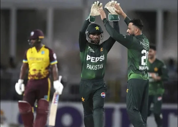 ہدف کے تعاقب میں ویسٹ انڈیز نے خطرناک آغاز کیا، لیکن پاکستانی بولرز کی شاندار کارکردگی نے ان کے عزائم خاک میں ملا دیے۔ ویسٹ انڈیز کی ٹیم مقررہ 20 اوورز میں 7 وکٹوں پر 164 رنز تک محدود رہی۔ محمد نواز نے 3 وکٹیں لے کر میچ کا پانسہ پلٹا، صائم ایوب نے بھی شاندار اسپیل میں 2 کھلاڑیوں کو آؤٹ کیا، جبکہ شاہین آفریدی اور سفیان مقیم نے ایک ایک وکٹ حاصل کی۔