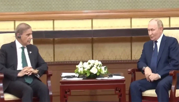چین کے دارالحکومت بیجنگ میں وزیرِ اعظم شہباز شریف اور روسی صدر پیوٹن کے درمیان ملاقات ہوئی ہے، اس موقع پر دونوں رہنماؤں نے گرم جوشی سے مصافحہ کیا۔